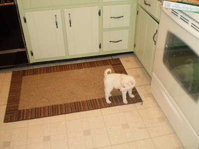 With this in hand I, we ventured into Cait’s apartment, said our hello’s and made our way over to the pee-pee pads, towels and pillows set up behind a gate in the apartment’s kitchen. As we peered down behind the gate we saw a napping Stevie all snug on a soft black pillow. As a first puppy meeting it was as cute as cute could be, especially when Stevie peered up at us, gave a little yawn and stretched with sound. Then his soft black pillow did the same. Stevie had a brother pillow. Puppy became puppies. I silently said “son of a bitch.”