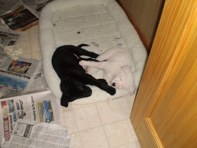 Yes, we have added puppies to the mix of animals that I’ve already aquainted you with here in the attic, Shana (existing Maria and Jagger dog) and Benny and Shoes (existing Steve cats). There is a certain dismay on their parts as well, as the mad rush of curiosity towards any of the three, should there be face to face or nose to butt scurrying, is usually met with cries, yelps, hisses and the occasional “talk to the paw ya’ baastaads!” It can be a fun disarray, though I’m sure if any of the three existing furry ones could talk “fun” wouldn’t be a word in the conversation and words I shouldn’t use here would.