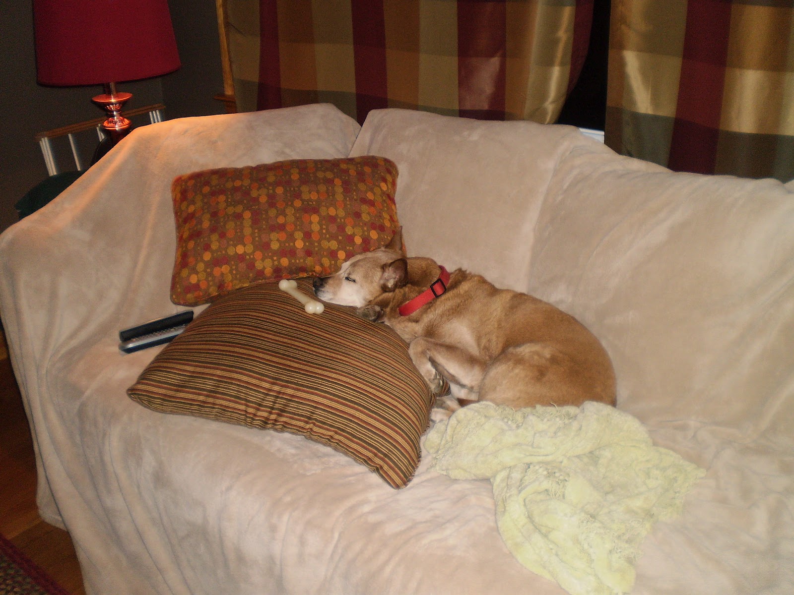 And there are memories. Shana breathing on her Stephen while he napped on the couch on his Scooby Doo pillowcase, curling inside Maria’s knees in front of the tube, sleeping on her blanky later next to Jagger’s bed…or just laying in the grass in hersunlight outside the back stoop of the FrankenGreco Ranch while the pups tried to nudge and lick her to play.