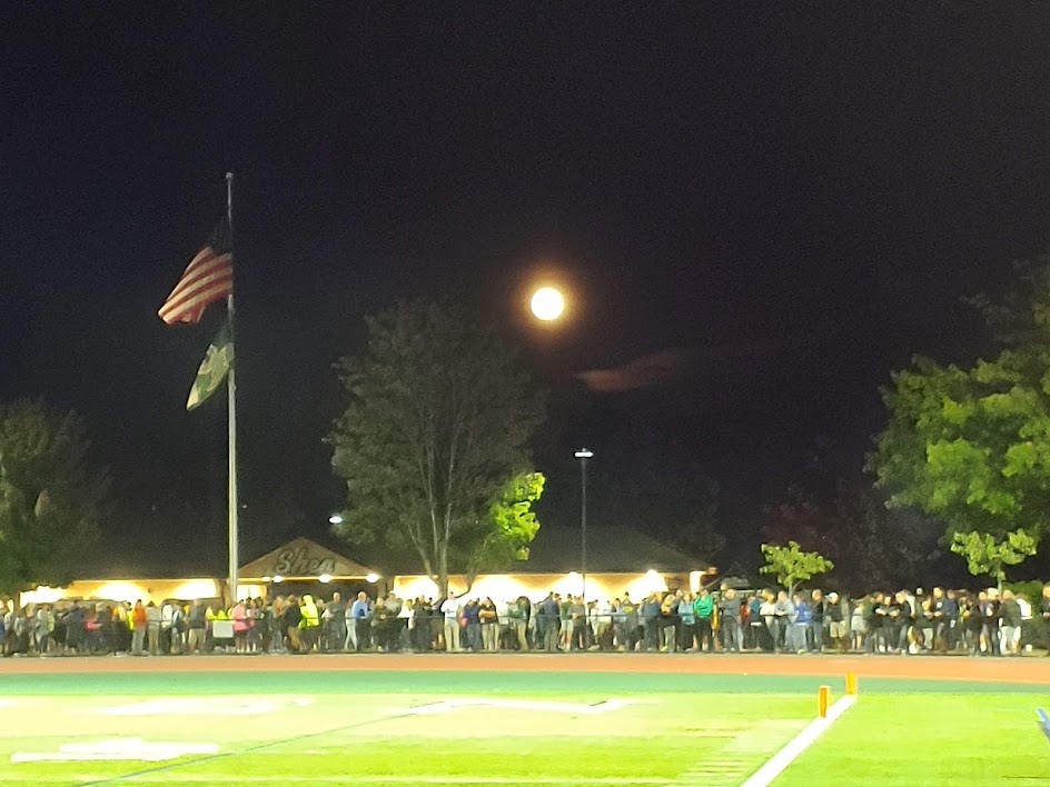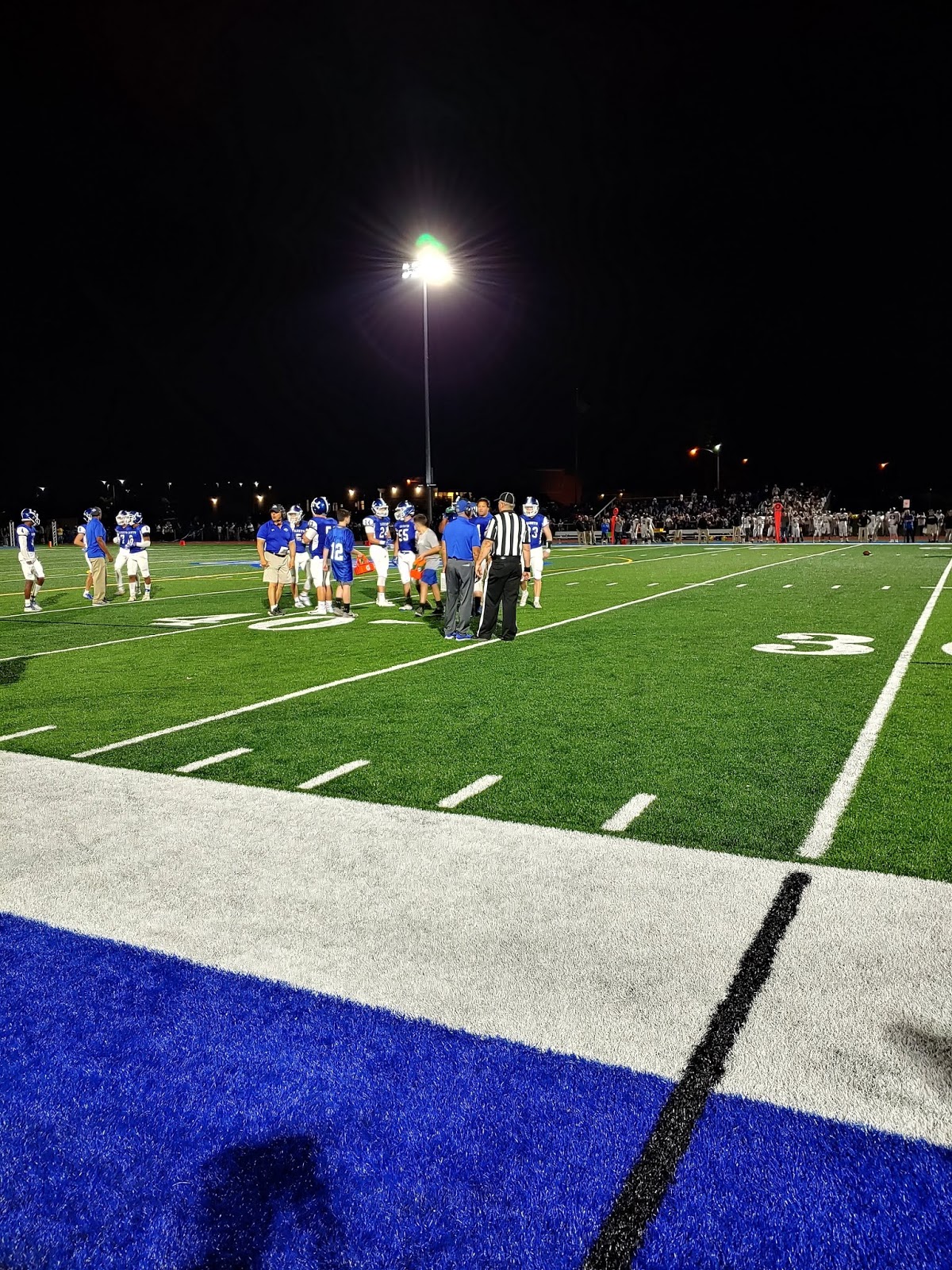 Once the game got started and I was in my usual spot with my usual parabolic I enjoyed myself again, as I always do on these Friday nights and my enjoyment was enhanced by the kids of the pep band, so in tune with the “Red Wave” student fan section. I was reminded of how much I enjoyed last year’s game here when I ran into their director, who I remembered, and she me, and helped her again find a place on the truck to plug in their little amp for the guitar. I also remembered her happy. Her joy at what she does with these kids, who fit right in on home game Friday nights where they might not otherwise and how she just couldn’t stop smiling. I felt like the big guy at the table by just being able to help them find an outlet for that amp. She’s exactly the reason teachers need to be paid more. About a dozen kids sitting cross legged in front of some upside down buckets, also all smiling, drum sticks in hand and at the ready, each sporting their own statement of themselves when it comes to hair or adornment but still playing for team, fronting a band that belted out classics coordinated with the student section. My only thought to her, at the end of the game, was that maybe the student section should change up the standard “THIS IS OUR HOUSE” or “YOU CAN’T DO THAT” kind of thing with something a bit more fun and left field like “MY MOM LOVES APPLE PIE” or “MY NEPHEW IS AFRAID OF SNAKES” or “THIS IS OUR HOUSE…TAKE YOUR SHOES OFF WE JUST HAD THE CARPETS DONE” … Yeah, Ok … but still, it’s an idea.
