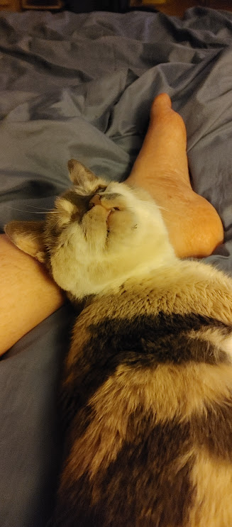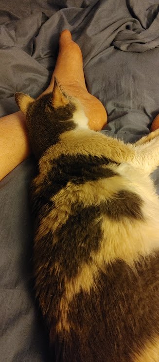 Sometimes she even grabs that never used extra pillow. Well at least it occasionally gets occupied I guess.