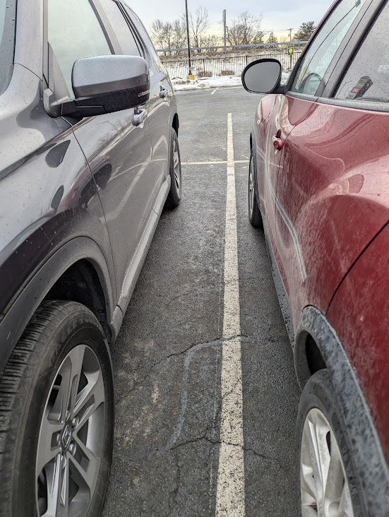 You pulled in so our driver’s doors were adjacent to each other??!! I mean, you willingly chose to park so close that you would have to almost squeeze out of your car like liquid?!